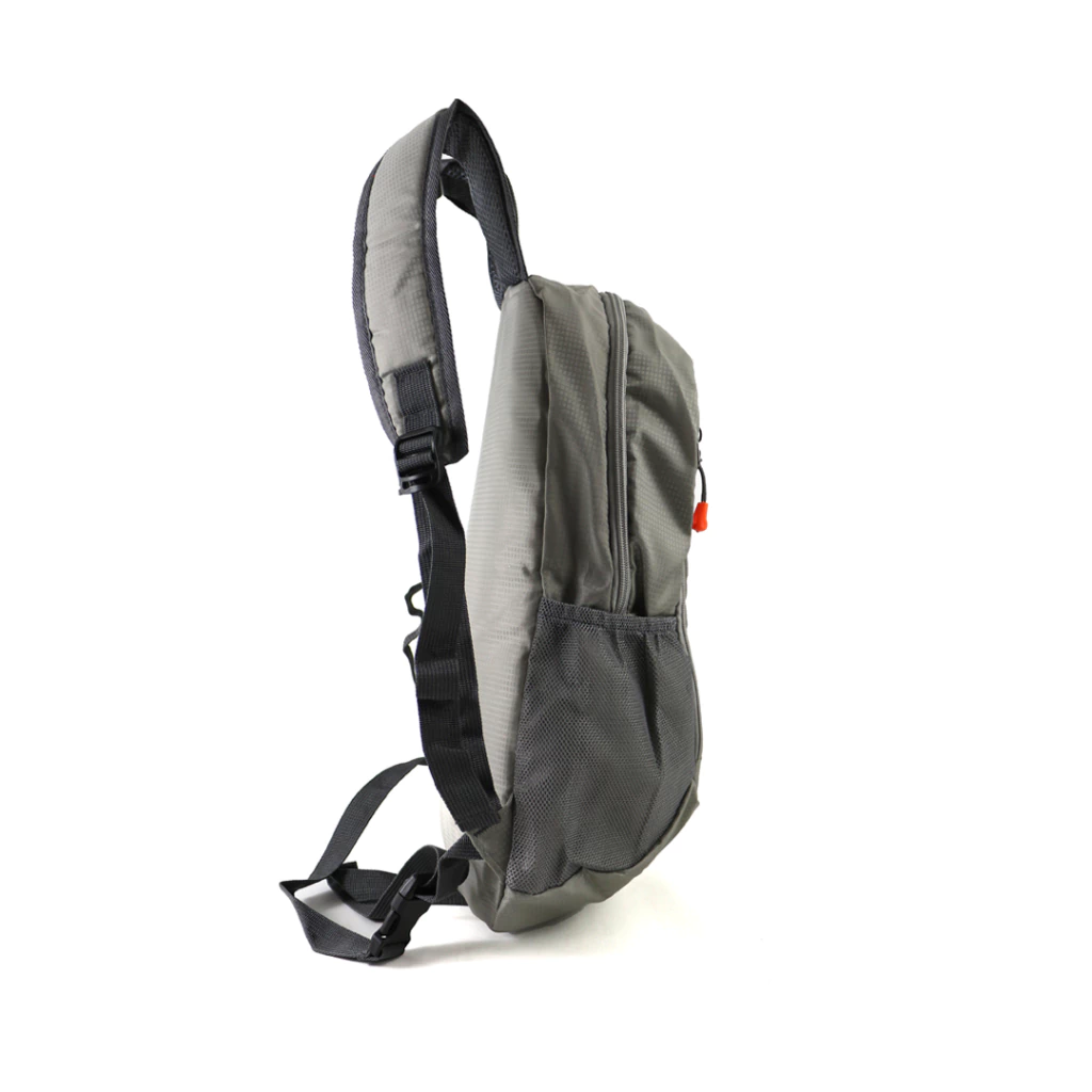 Cuenta con apertura superior que facilita el acceso rápido a tus pertenencias y bolsillos laterales enmalla, ideales para llevar botellas o pequeños objetos que necesites tener siempre a mano. Su correa regulable permite ajustar el calce para máxima comodidad durante todo el día.