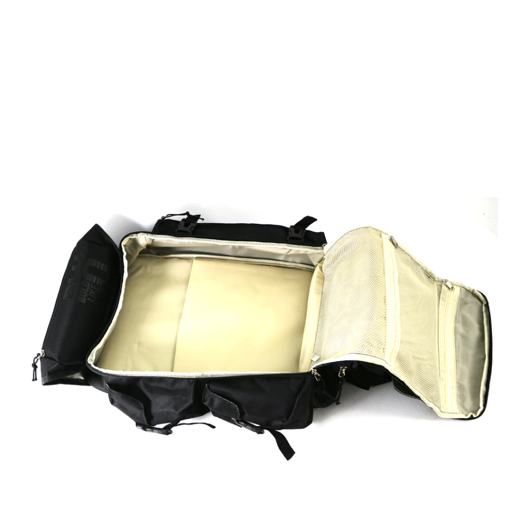 Cuenta con un práctico bolsillo lateral con 3 compartimientos espaciosos para organizar tus objetos de forma ágil y un bolsillo lateral con cierre a lo largo de toda su altura, ideal para guardar mantas o elementos de camping con facilidad.