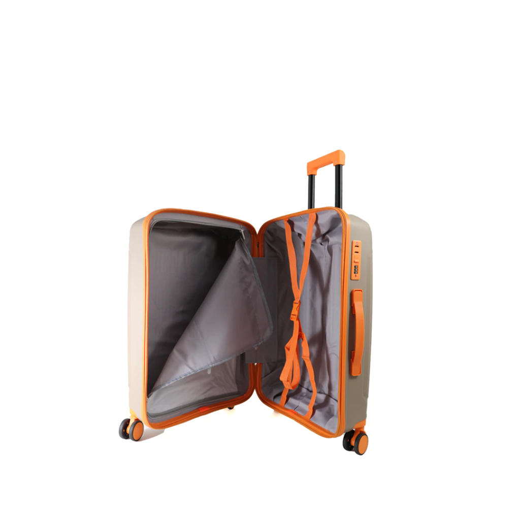 Cuenta con un organizador interno con cierre de protección para mantener tus objetos seguros y ordenados. Sus dobles ruedas 360° (8 en total) garantizan un desplazamiento suave y sin esfuerzo. Además, su manija retráctil permite un manejo cómodo en todo momento.