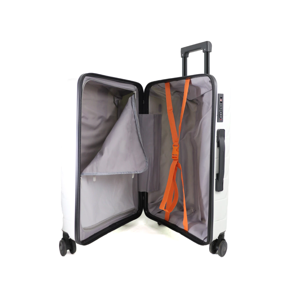 Su interior cuenta con un organizador con cierre de protección y estructura de PP que asegura la durabilidad. Las cuatro ruedas dobles 360° permiten un desplazamiento ágil y sin esfuerzo, mientras que la manija retráctil facilita su transporte.